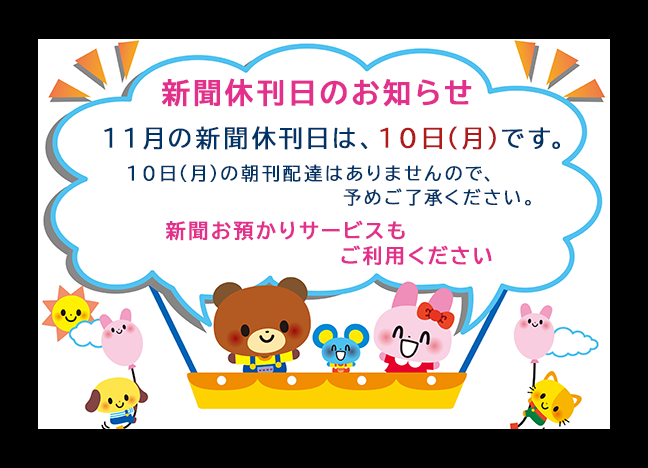 【休刊日のお知らせ】12月の新聞休刊日は、15(月)です。