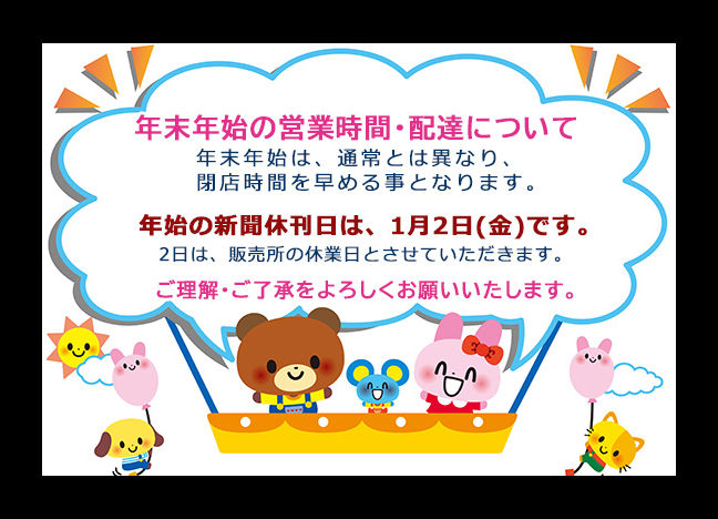 【休刊日のお知らせ】1月の新聞休刊日は、2日(金)です。