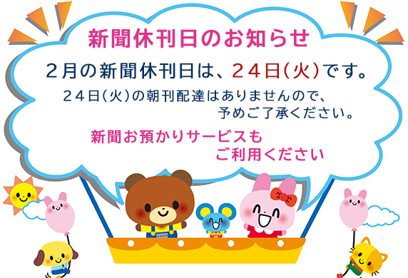2月の新聞休刊日は、24日(火)です。ご利用ください 新聞お預かりサービス